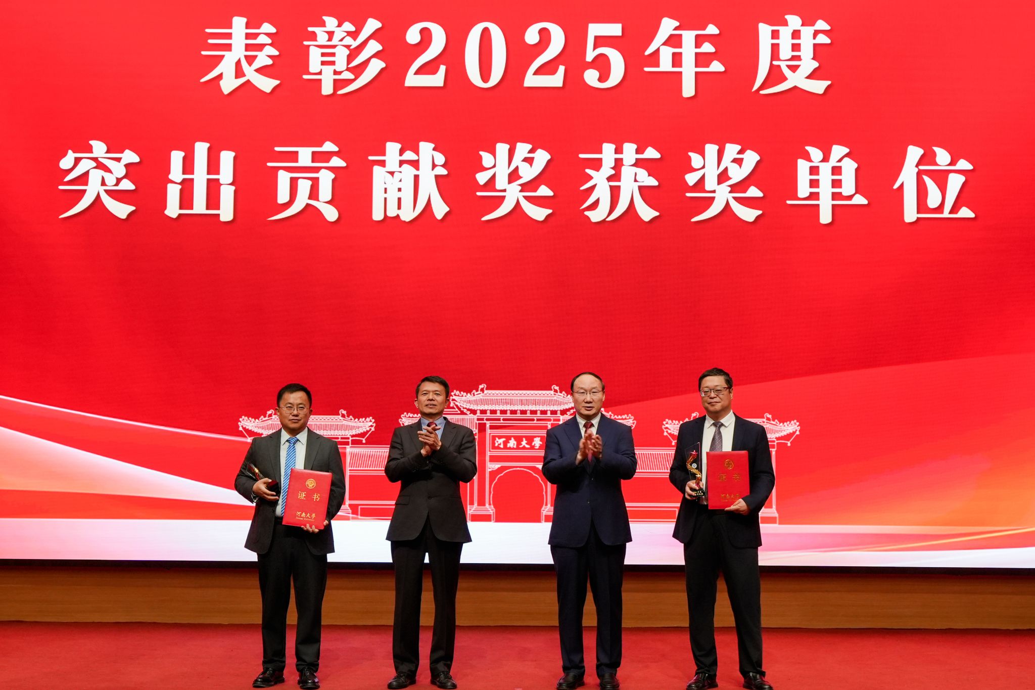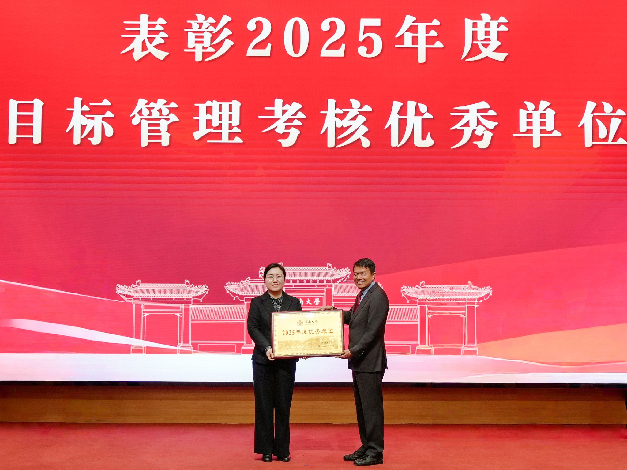 3月30日,河南大学召开2026年工作会议。会议对2025年度目标管理考核结果进行了通报和表彰。能源科学与技术学院获“河南大学2025年度优秀单位”和“河南大学2025年度突出贡献奖”。